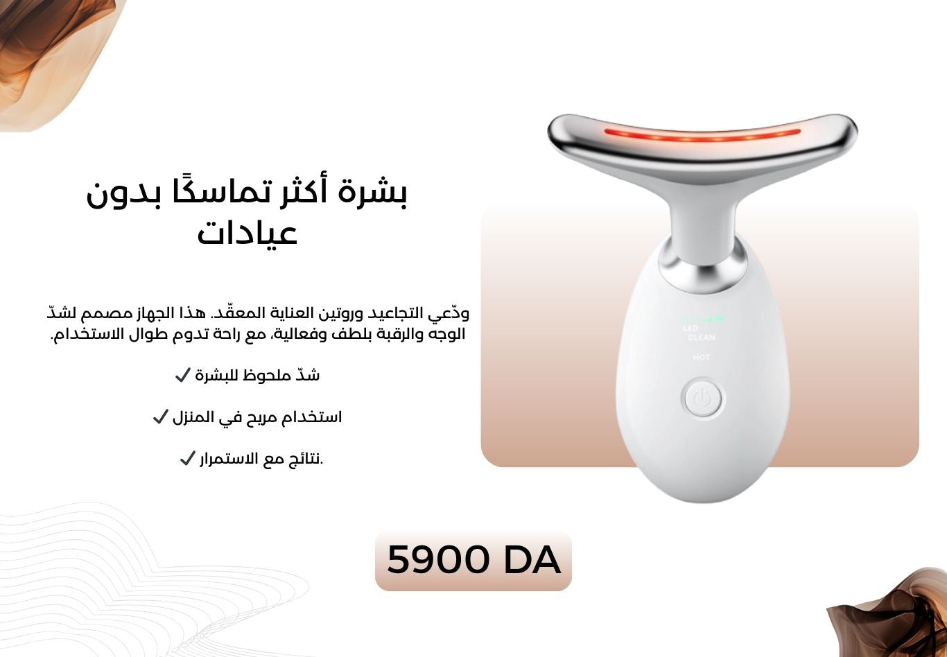 هذا جهاز عناية بالبشرة يعمل بتقنية الحرارة والليد، مصمم لشدّ البشرة، تحسين مظهرها، وتعزيز امتصاص منتجات العناية.
